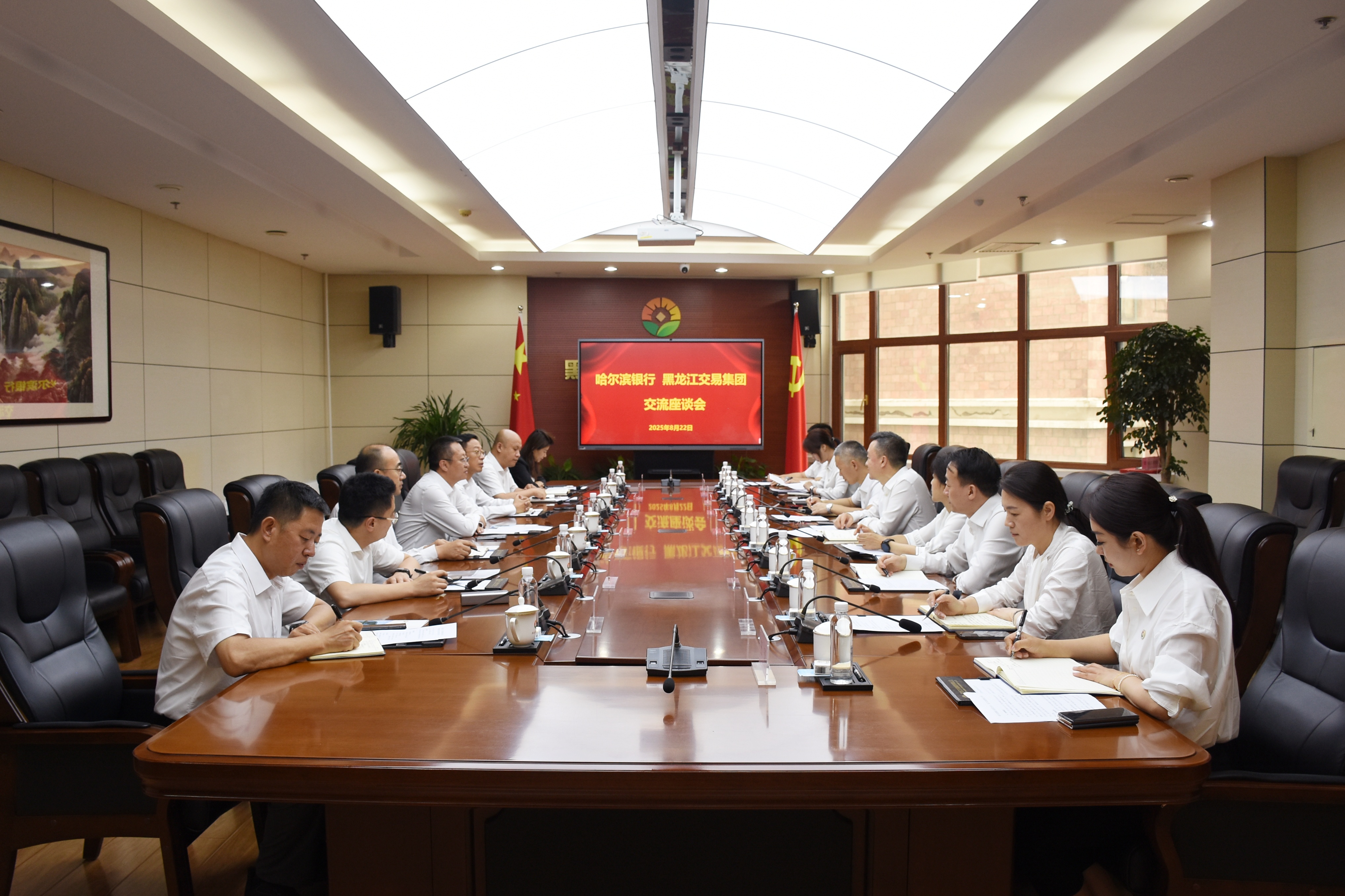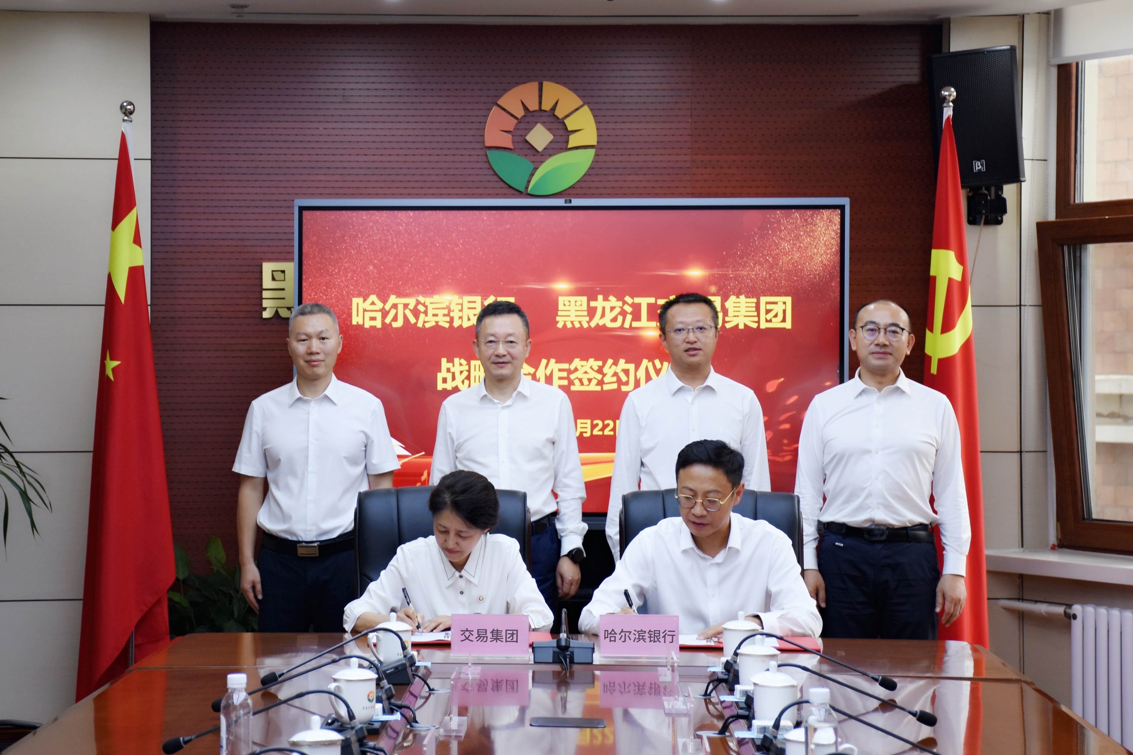 新聞中心 > 集團(tuán)要聞8月22日,交易集團(tuán)與哈爾濱銀行舉行戰(zhàn)略合作簽約儀式。哈爾濱銀行黨委書記、行長姚春和,交易集團(tuán)黨委書記、董事長夏明禹,副總經(jīng)理單勇,哈爾濱銀行行長助理房尚及雙方有關(guān)部門和企業(yè)負(fù)責(zé)同志開展業(yè)務(wù)座談并出席簽約儀式。哈爾濱銀行副行長劉殿新,交易集團(tuán)黨委委員、總會(huì)計(jì)師朱安超分別代表雙方簽署合作協(xié)議。
