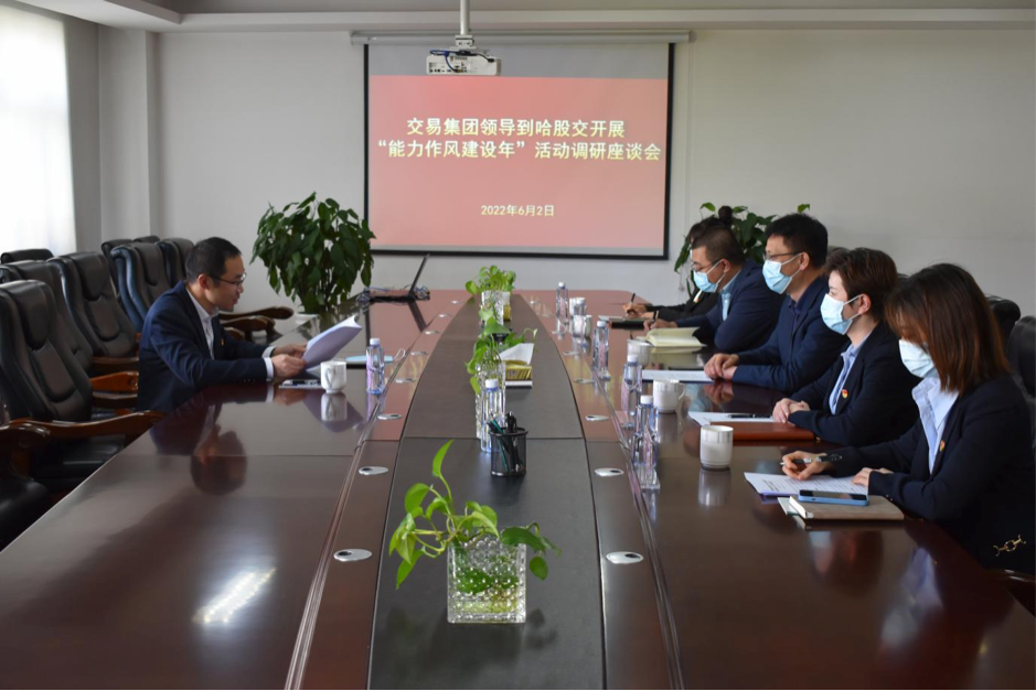 新聞中心 > 子公司動(dòng)態(tài)按照交易集團(tuán)黨委關(guān)于領(lǐng)導(dǎo)班子成員深入基層黨建聯(lián)系點(diǎn)宣講省第十三次黨代會(huì)精神,深入“能力作風(fēng)建設(shè)年”活動(dòng)包聯(lián)企業(yè)調(diào)研指導(dǎo)“能力作風(fēng)建設(shè)年”活動(dòng)的工作部署,6月2日,交易集團(tuán)黨委委員、董秘徐松之到哈爾濱股權(quán)交易中心(以下簡(jiǎn)稱哈股交)組織召開調(diào)研座談會(huì),現(xiàn)場(chǎng)宣講省第十三次黨代會(huì)精神,就哈股交開展“能力作風(fēng)建設(shè)年”活動(dòng)和支部黨建等工作情況聽取工作匯報(bào),與哈股交中層以上管理人員進(jìn)行座談交流。