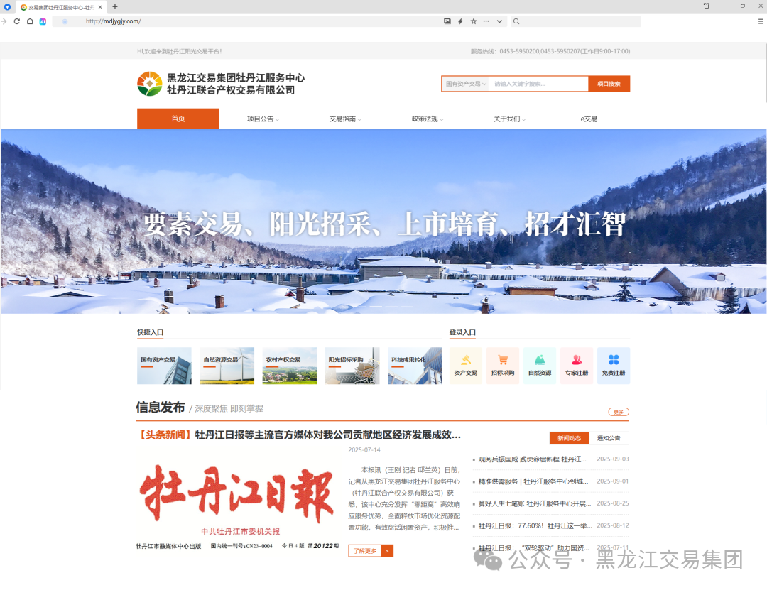 牡丹江聯(lián)合產(chǎn)權(quán)交易有限公司(交易集團(tuán)牡丹江服務(wù)中心)官網(wǎng),牡丹江陽(yáng)光交易平臺(tái)網(wǎng)站于近日正式上線。作為牡丹江市公共資源交易體系重要組成部分,該網(wǎng)站承載國(guó)有資產(chǎn)交易、自然資源交易、陽(yáng)光招標(biāo)采購(gòu)等全要素交易展示功能,依托全流程陽(yáng)光交易系統(tǒng),為牡丹江區(qū)域各類要素合規(guī)高效流轉(zhuǎn)提供技術(shù)服務(wù)支持。